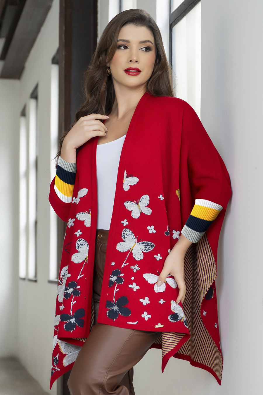 Esta prenda combina la calidez de una ruana con la sofisticación, ofreciendo un equilibrio perfecto entre moda y funcionalidad. Esta ruana te permite usarla encima de tu look diario para que estés siempre cómoda y hermosa.